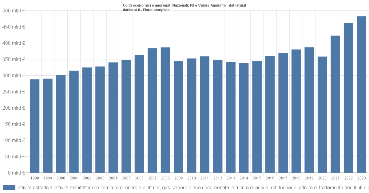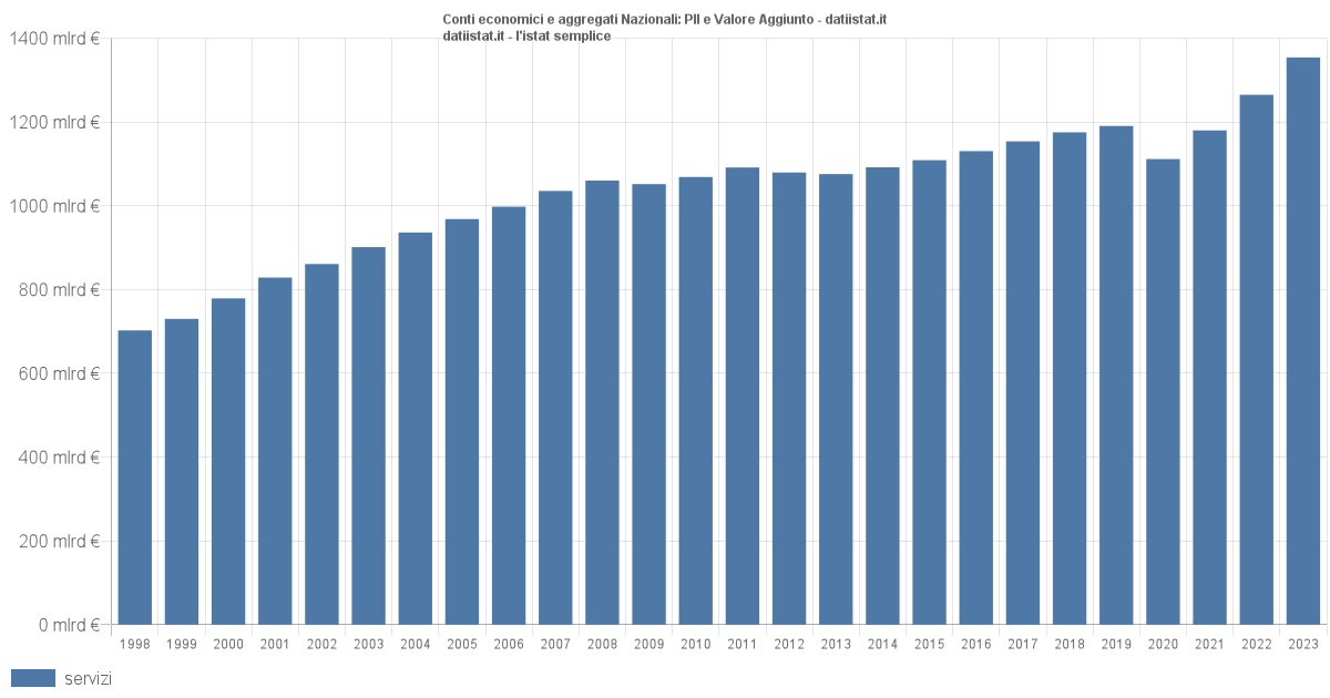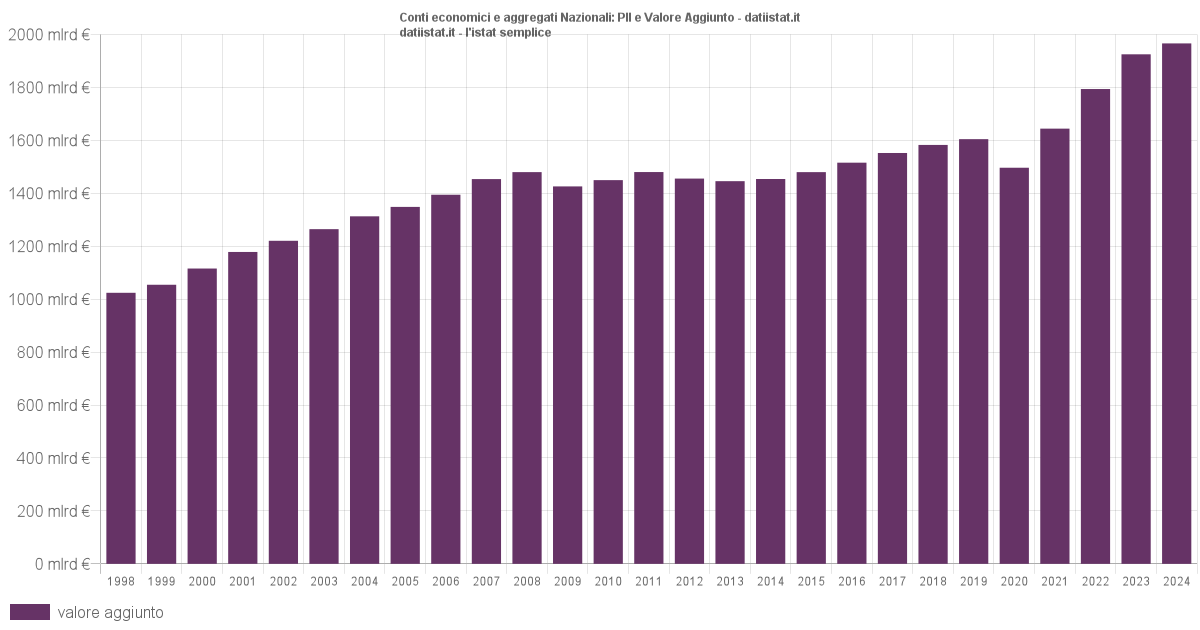 Impossibile visualizzare il grafico: Valore Aggiunto Valore aggiunto: il valore aggiunto è dato dal valore della produzione meno il valore dei costi intermedi; consente di misurare la crescita del sistema economico in termini di nuovi beni e servizi disponibili per gli impieghi finali. Valutazione Mar-2024 (stima preliminare)