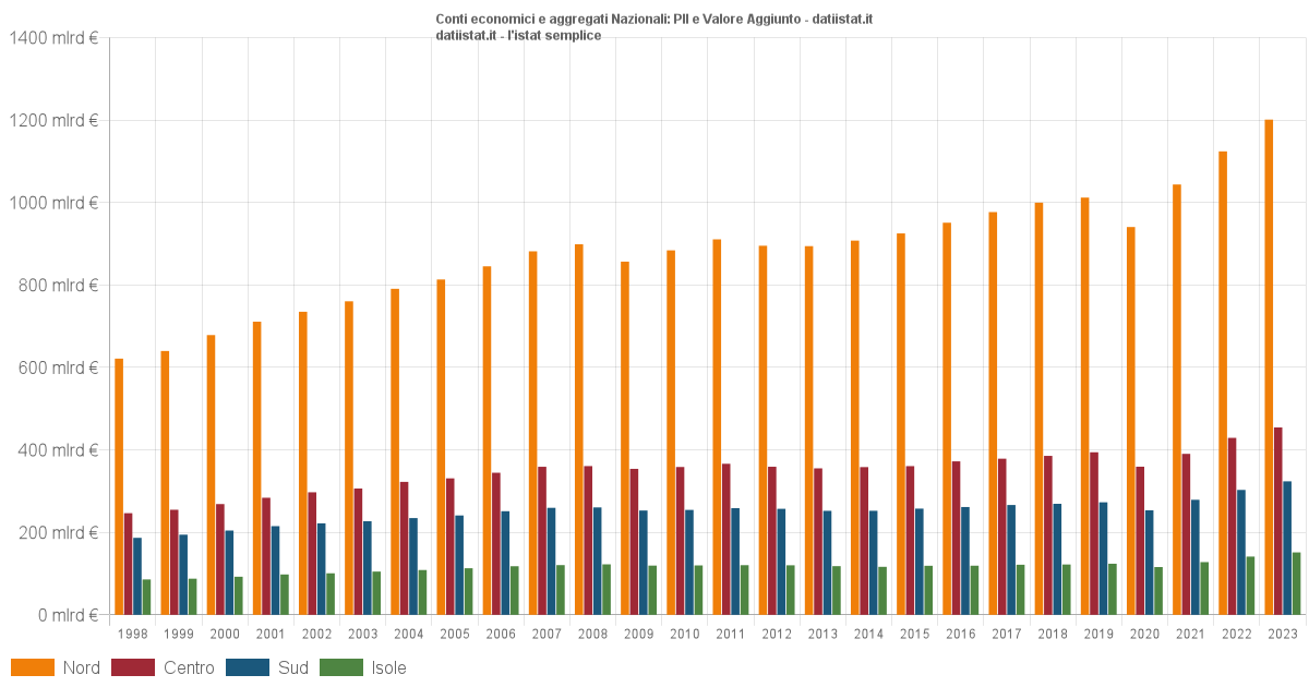 Impossibile visualizzare il grafico: Valore Aggiunto per branca di Attivita Principali aggregati territoriali di Contabilità Nazionale : Valore aggiunto per branca di attività - valutazione Mar-2024 (stima preliminare)1